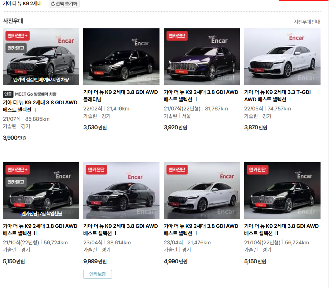| 옵션 선택의 제한 | G80과 비교할 때 K9의 옵션이 제한적일 수 있지만, 제공되는 대부분의 옵션은 만족스럽습니다. |