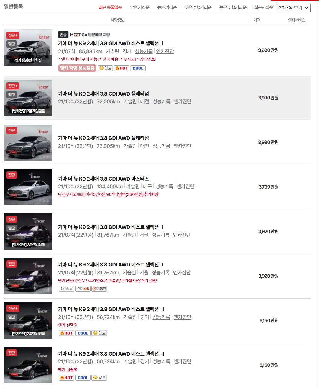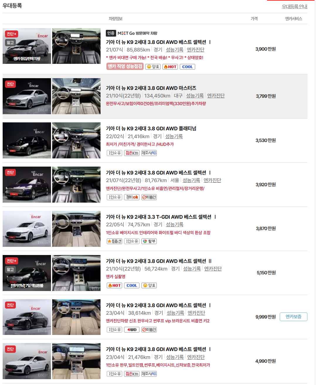1. 기아 K9 중고차 가격