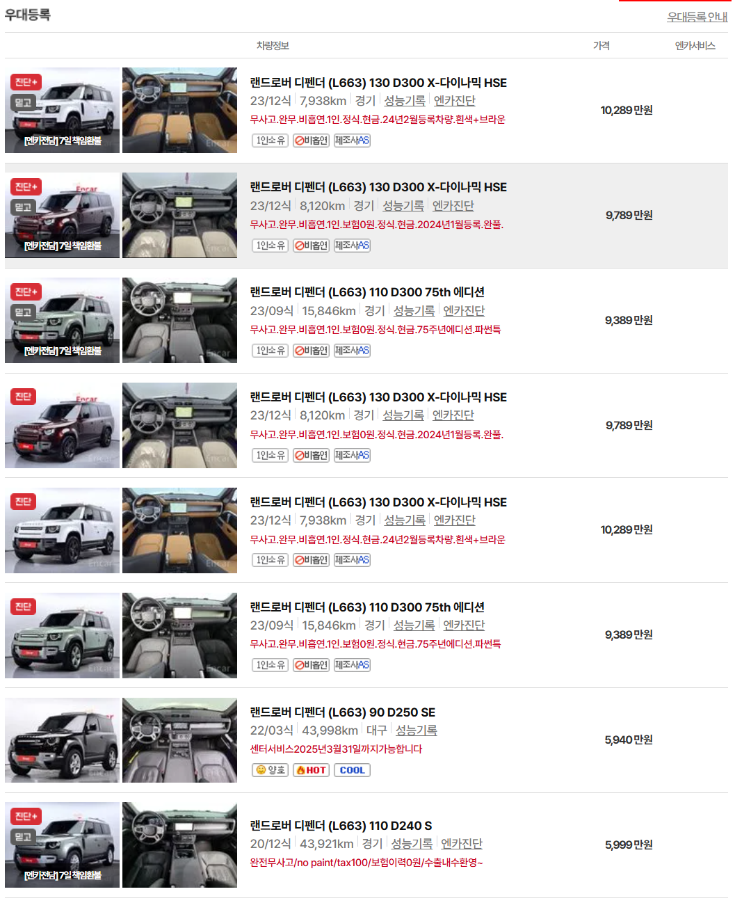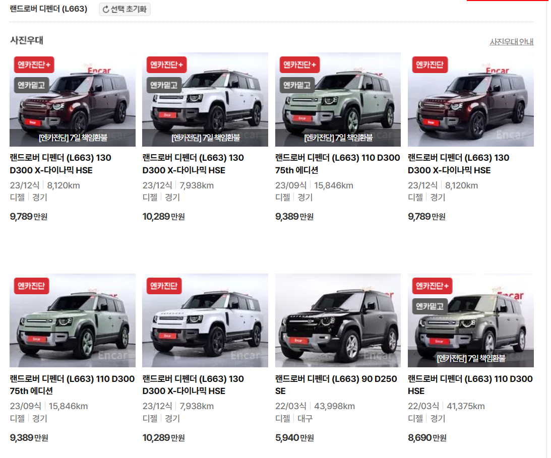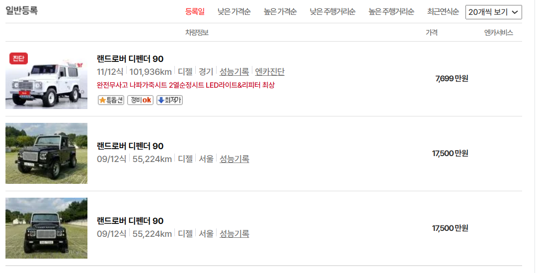 1. 랜드로버 디펜더 중고차 가격