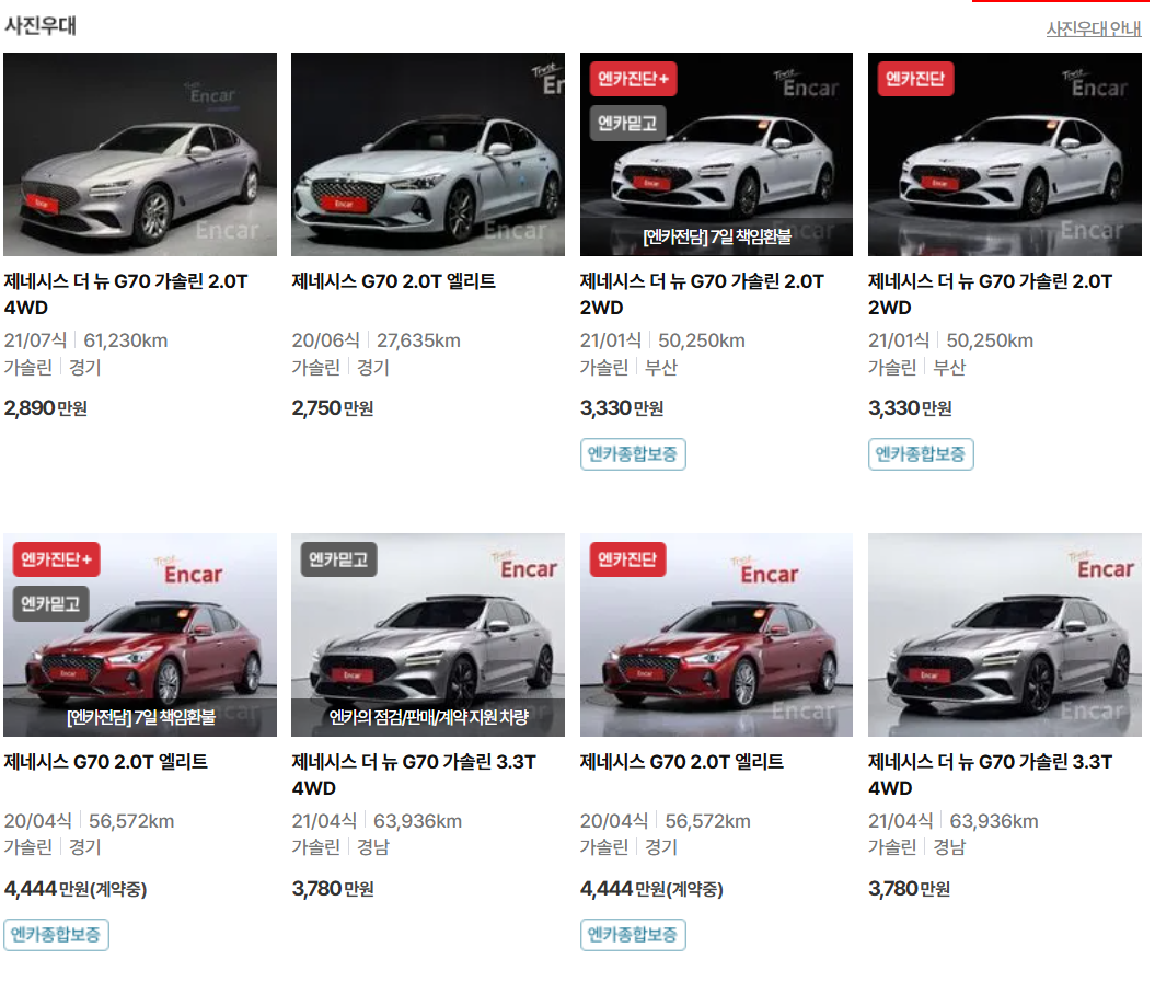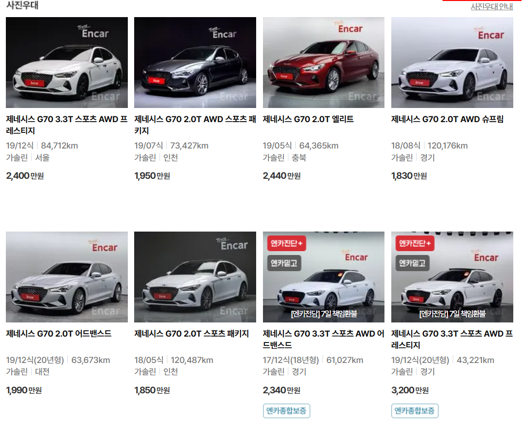 오늘은 제네시스 g70 중고차 가격 및 시세에 대해 알아보았습니다. 이처럼 제네시스 G70 중고차에 대한 정보와 가격 동향을 통해, 여러분들이 보다 현명하게 중고차 구매를 할 수 있길 바랍니다.
