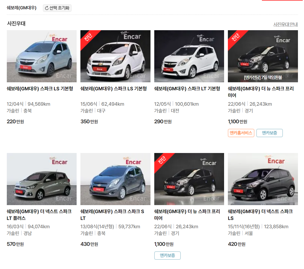 스파크 중고차의 옵션별 가격 차이는 상당할 수 있습니다. 주요 내용은 다음과 같습니다