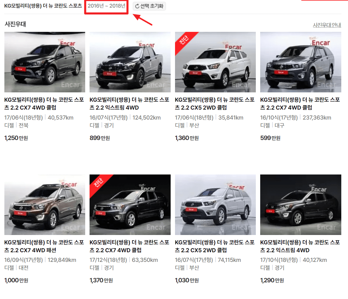 1. 코란도 스포츠 중고차 가격